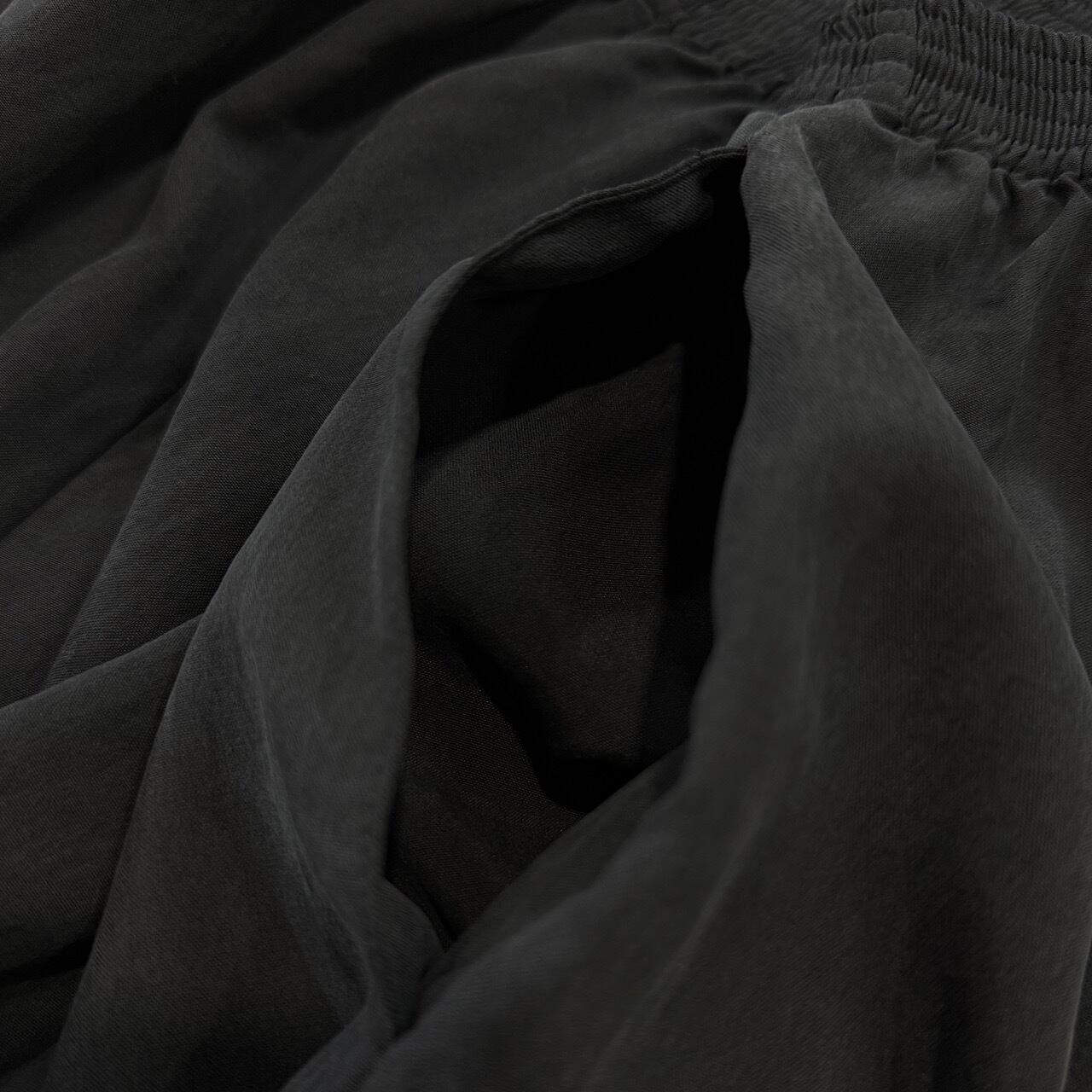 プレーンのブラックでとろみ感のあるSILK100%でワイドシルエットなのも◎